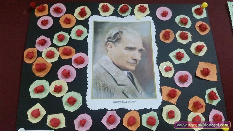 Sonbahar yapraklı ve çiçekli Atatürk çerçevelerimiz