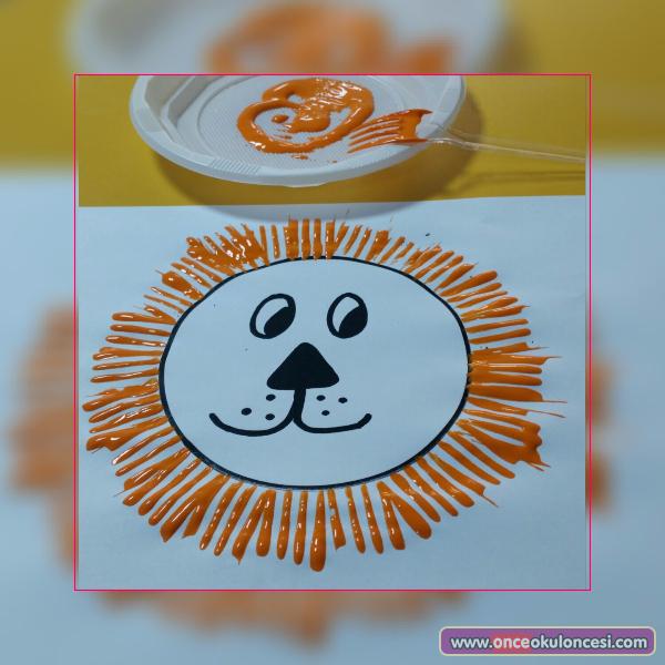 Aslanın yelesini çatal baskısı ile yaptık. Aslancık şarkısı eşliğinde
