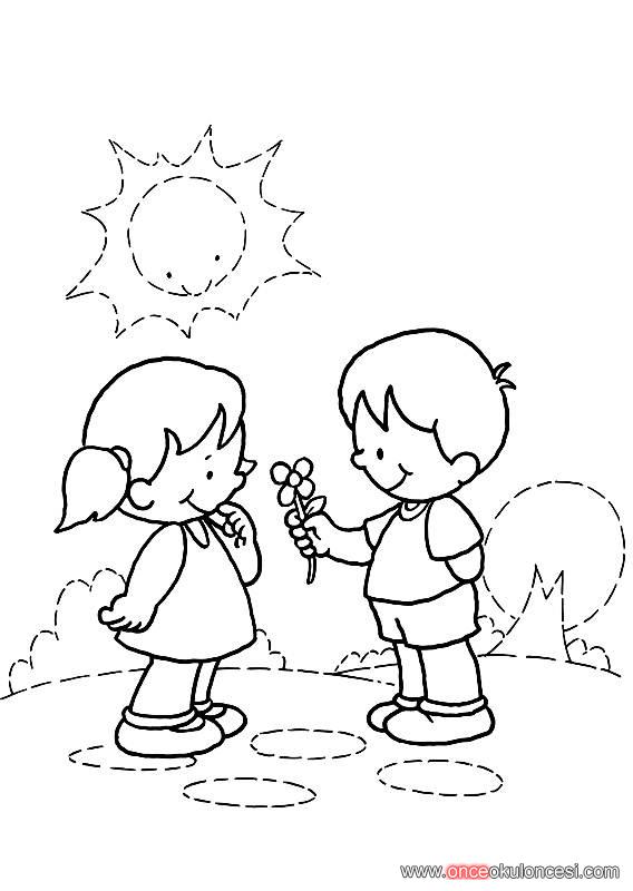 Değerler Eğitiminde sevgi (arkadaş sevgisi) konusunda bu boyamalardan yararlanılabilir.