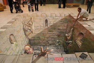 Bu resammın sanatının eşi benzeri yok. Kaldırıma öyle resimler çiziyor ki inanılmaz. Resimler 3 boyutlu.. Önünüzde bir çukur, ya da dev bir canavar çıkıyor. İşte o resimler.