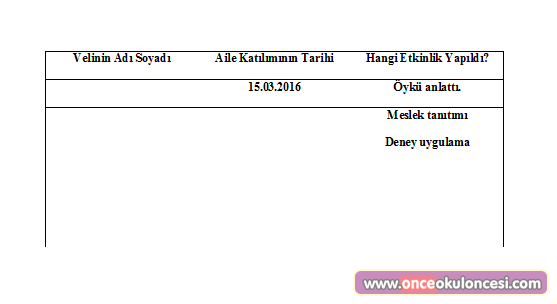 Her öğretmen bu çizelge ile veli katılımı yıllık planını hazırladığında, hangi gün, hangi etkinlikte hangi veliyi çağıracağını bilir. Öğretmene kolaylıktır. Hatta bu plan program kitabının bir yerinde de yazıyordu.