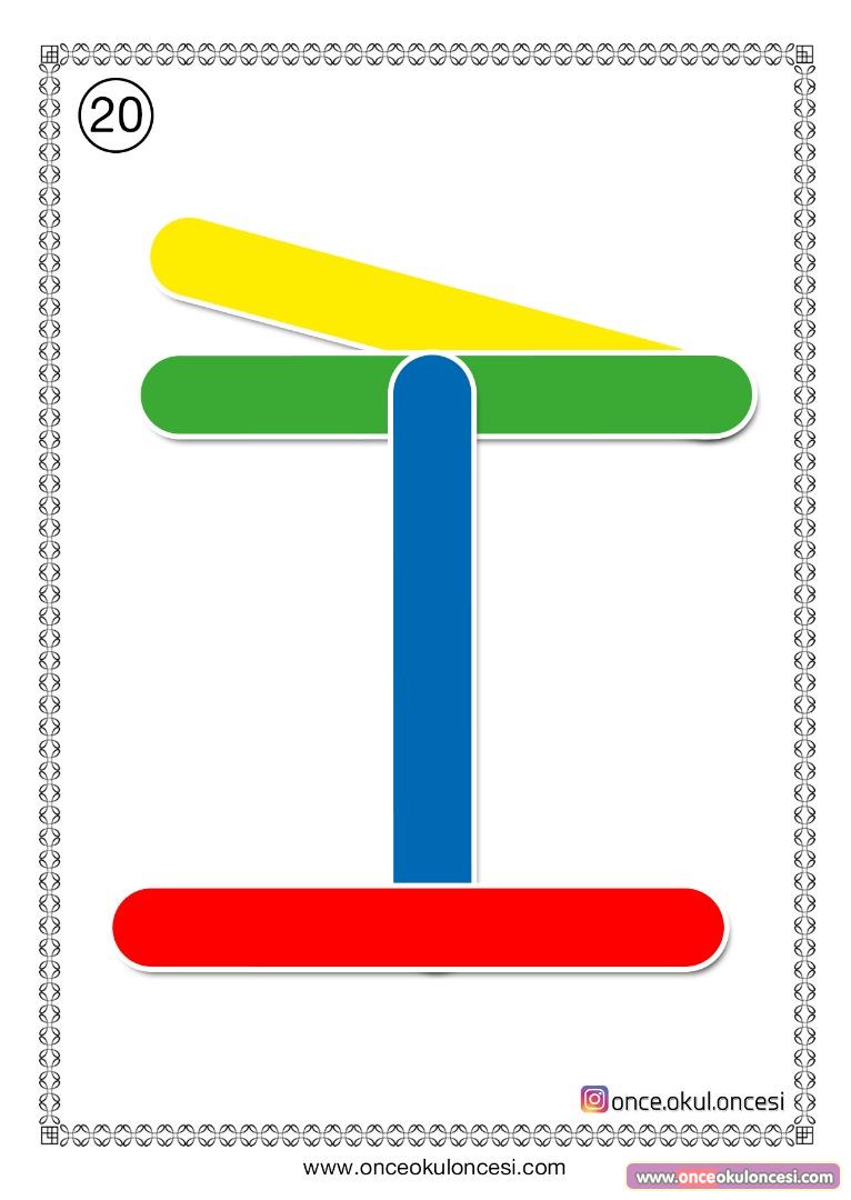 Çocuklarda görsel dikkat ve odaklanma becerilerini geliştirmek için kolaydan zora doğru 20 adet dil çubuğu modeli hazırladım. İnternette de bir çok dil çubuğu modeli örnekleri var ama genellikle gelişigüzeldi. Bunları belli bir sıralamayla kolaydan zora doğru hazırladım. İlk 10 model 3 çubukla, diğer 10 model 4 çubukla yapılabilecek şekilde tasarlandı. Her grup kendi içinde kolaydan zora doğru hazırlandı. İlerleyen zamanlarda başka modeller de hazırlayacağım.