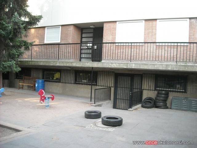 İşte okulun adı ve okula giriş kapısı. İki katlı, u biçiminde planlanmış uzun bir bina.