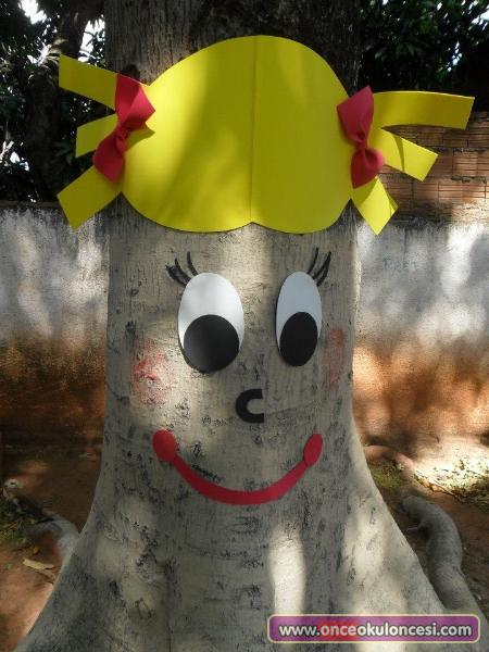 Okul bahçesinde böylesine kalın gövdeleri olan ağaçlarınız varsa uygulayabilirsiniz. Çok sevimli olurlar.