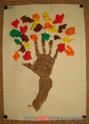 5. el ve parmak baskısı ile güzel bir bahar ağacı..