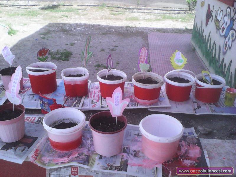 SAKSILARIMIZA ÖNCE TOPRAĞINI KOYDUK,İSTEDİKLERİ RENKTETEKİ ÇİÇEK SOĞANLARINI DİKTİK VE CAN SULARINI VERDİK SONRA SAKSILARIMIZIN DIŞINI YAĞLI BOYA İLE BOYAYARAK PASTEL BOYALARLA SÜSLEDİK.EN SON HANGİ RENK ÇİÇEK DİKTİLERSE ONUN RESMİNİ YAPIP SAKSIMIZA KOYDUK BAKALIM HANGİ RENK ÇIKACAK.1-2 HAFTAYA KALMAZ SAKSILARIMIZ RENKLENECEKLER ÇOCUKLAR SABIRLA MERAKLA BEKLİYORLAR.
