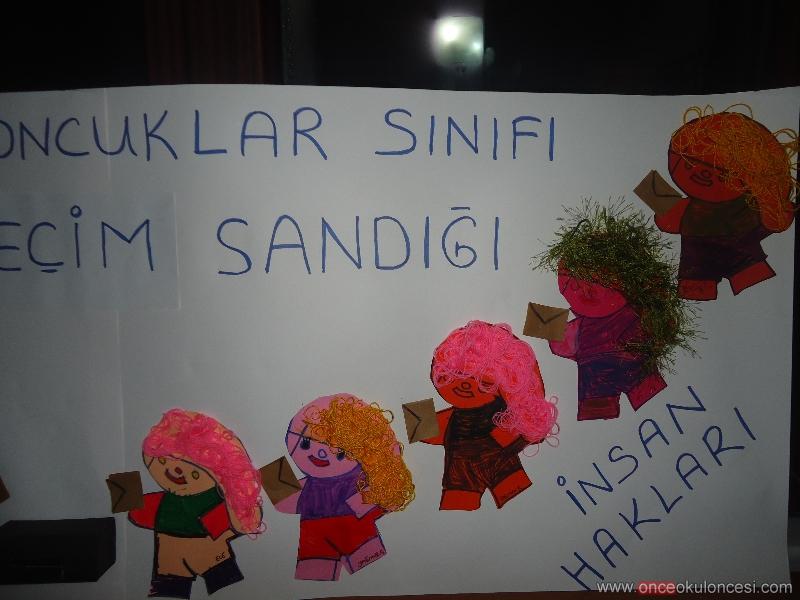 İnsan hakları ve demokrasi haftası dolayısıyla sınıfta başkanlık seçimi yaptık, oylarımızı yaptığımız seçim sandığına attık, çoğunluğun seçimine saygı göstermeyi öğrendik ve diğer seçimde tekrar buluşmak üzere dedik.