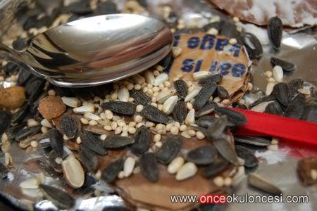 Daha sonra üzerine çerez,kurabiye veya yemleri serpiştirin.