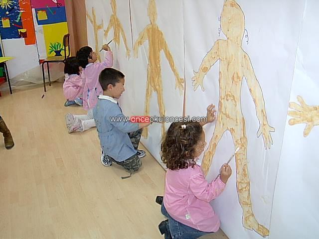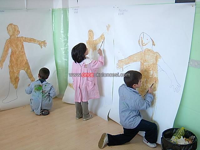 Çocuklar büyük kartonun üzerine yatarlar, vücutlarının kalıbı çıkarılır. Daha sonra da herkes kendi vücudunu boyar.