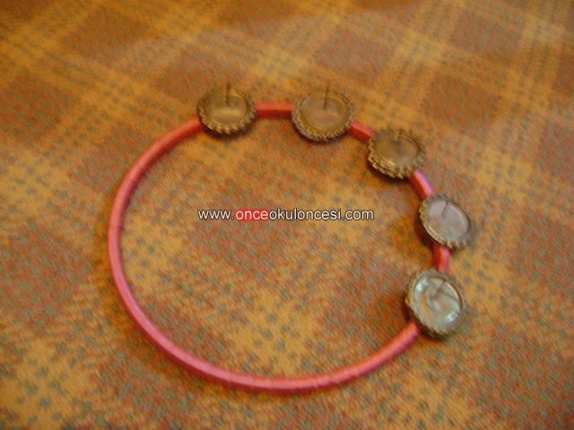 çocuklar için eğlenceli bir tef.gazoz kapaklarını açıpta yapılmıştır taslağın etrafı pembe rafya ile sarılmış dayanıklı bir müzik aletidir.