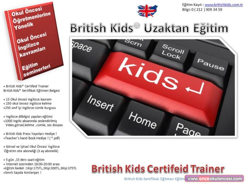 Türkiye'nin ilk "Okul Öncesi Öğretmenlerine" yönelik "British Kids Certifeid Trainer" British Kids Sertifikalı Eğitmen eğitimleri 3-6 yaş tüm okul öncesi kavramları içerir.