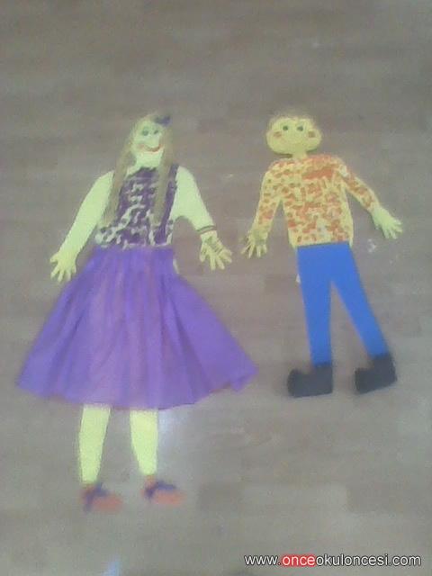 öncelikle sınıfta en uzun boylu olan çocuğumuzla,en kısa boylu olan çocuğumuzu belirledik ve kartonlara yatırarak şekillerini çıkardık..