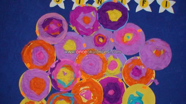 Her çocuk önce dairesini keser, hazırlanan krapondan şeritler ortadan başlayarak sırayla dolanır. Sonunda hepsi bir araya getirilir ve panoda rengarenk bir çiçek oluşturulur.