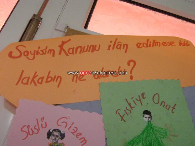 UZUN MEHMET öyküsünden sonra soyadı kanunu ilan edilmeseydi sizin lakabınız ne olurdu sorusuna çocuklarımızın verdiği cevaplarla ve fotoğraflarının altına kendilerini çizdikleri resimlerle yapılmış bir çalışmadır