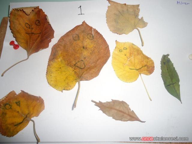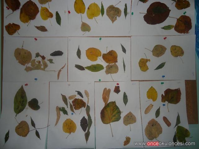 Öncelikle sonbahar yaprakları toplandı ve onları incledik. Boyut, şekil, renk, aynı farklı kavramları verildi bu çalışmada.