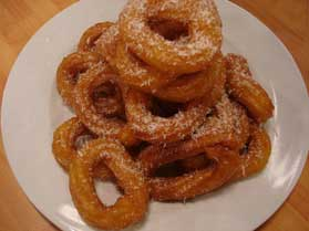 Malzemelerin hepsini karıştırıp,yumuşak hamur yapın.Hamuru sıkma torbasına koyun.Elinizi yağlayın.Hamuru elinizin üstüne halka şeklinde sıkın,simit gibi bir şekil verebilirsiniz.Tavadaki soğuk yağa atınız.Tavada pişirip iyice kızarınca soğuk şerbete çıkarın.Daha üzerine Hindistan cevizi serpip servis yapabilirsiniz.