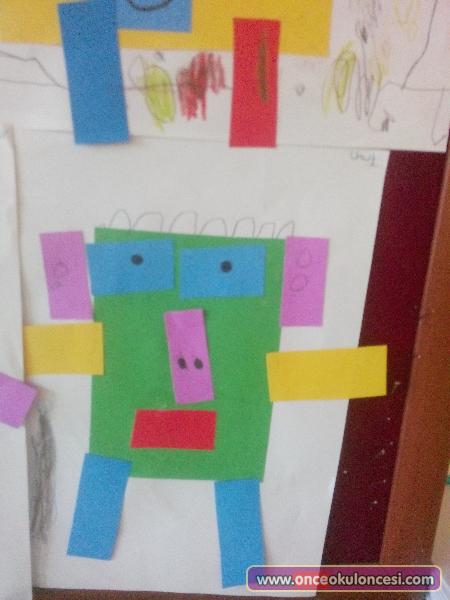 dikdörtgen geometrik şekil etkinlik kağıt işi karton üçgenlerle yaptığımızı dikdörtgenle yaptık ama her bir parça dikdörtgen. farklı hiç şekil yok..çocuklarımın ellerine sağlık.