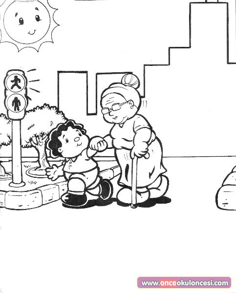 Yaşlılara Yardım Edelim Boyama Sayfası
