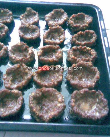 kıymayı köftelik yoğurduktan sonra kase şekli verilir ve fırında pişrilir..