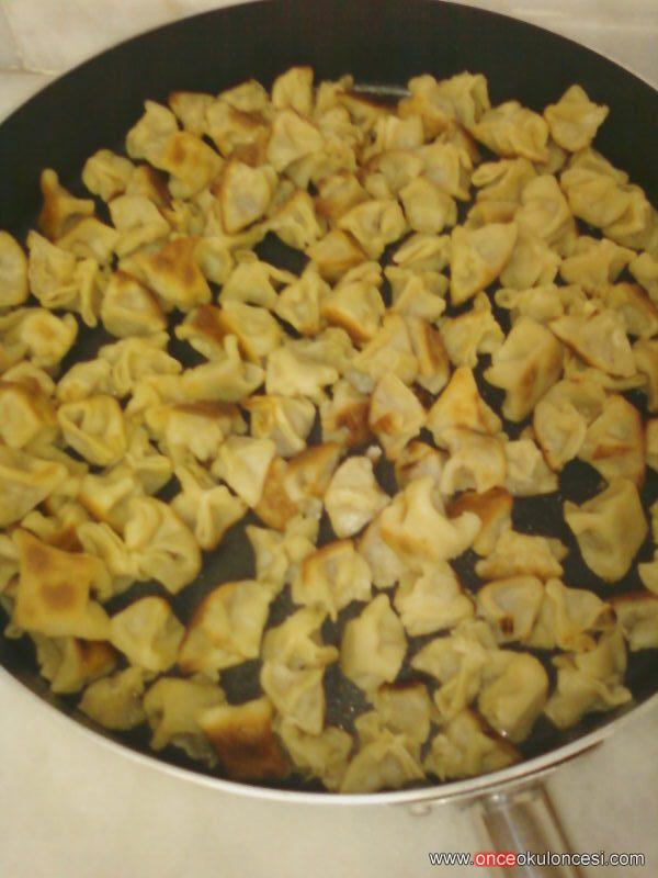 Dün akşam mantı yaptık ve sizler için kızartılmış halini çektim...Bizim mantımız biraz değişik önce kızartılıyor sonrada üstüne su dökülerek pişiriliyor.En üstüne hamur ile kapatarak pişiriyoruz biz....