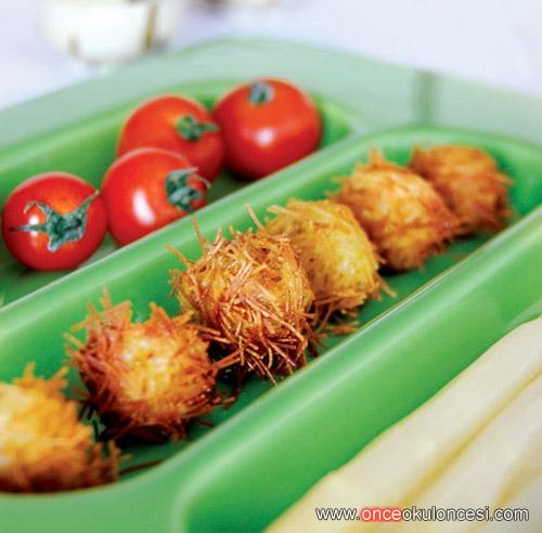 Patatesleri kabukları ile birlikte iyice haşlayın. Haşlanan patateslerin kabuklarını soyup, ezerek püre haline getirin. Tuz ve karabiberle tatlandırıp karıştırın. Püreden ceviz büyüklüğünde parçalar koparıp avucunuzun içinde yuvarlayın. Elde ettiğiniz patates toplarını önce çırpılmış yumurta akına sonra da tel şehriyeye bulayın. Kızgın yağda kızartın. Sıcak servis yapın.
