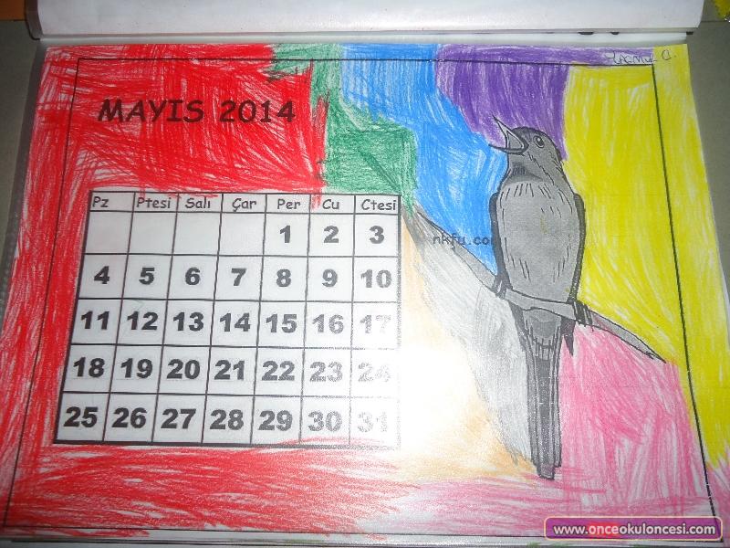 2014 Yeni yıl takvimimizi mevsimlerle ilişkilendirerek yaptık. Ayları boyadılar ve şeffaf dosyayla kaplandı hepsi. Süslemeler için eva kullanıldı.