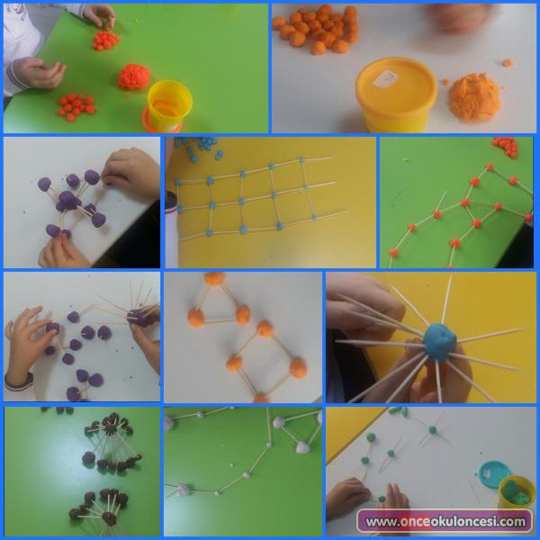 Öncelikle minik toplar yapıldı. Kürdanlarla topları birleştiriyoruz ve özgün bir şekilde çalışıyoruz.